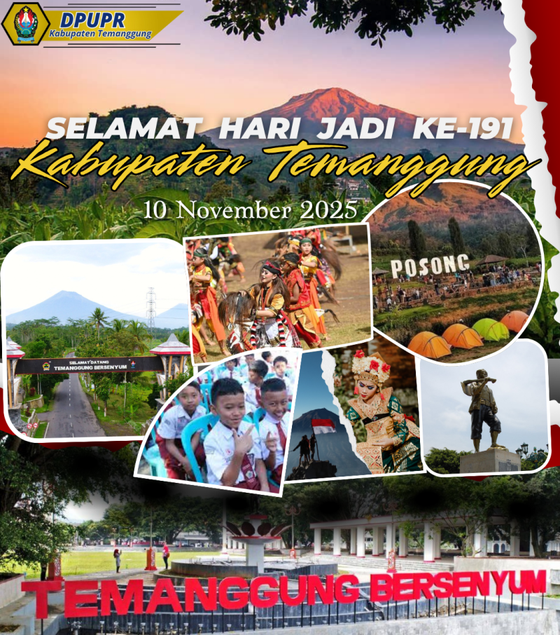Kategori Smart Government (Pemerintah Cerdas) Kategori: Smart Government (Pemerintah Cerdas) Sekretariat 13 November 2025 09:08:00 41 Kabar baik untuk warga Temanggung, masyarakat berpenghasilan rendah (MBR) bisa bangun rumah tanpa bayar retribusi PBG Selengkapnya Kategori: Smart Government (Pemerintah Cerdas) Sekretariat 12 November 2025 09:06:00 16 Hari Kesehatan Nasional Selengkapnya Kategori: Smart Government (Pemerintah Cerdas) Sekretariat 12 November 2025 09:06:00 31 Hari Ayah Nasional Selengkapnya Kategori: Smart Government (Pemerintah Cerdas) Bidang Sumber Daya Air 10 November 2025 09:04:00 25 Rapat Mingguan Bidang Sumber Daya Air Selengkapnya Kategori: Smart Government (Pemerintah Cerdas) Sekretariat 10 November 2025 09:02:00 16 Selamat Hari Pahlawan Nasional Selengkapnya Kategori: Smart Government (Pemerintah Cerdas) Sekretariat 10 November 2025 09:01:00 21 Selamat Hari Pahlawan Nasional Selengkapnya Kategori: Smart Government (Pemerintah Cerdas) Sekretariat 10 November 2025 09:00:00 24 Selamat Hari Jadi Ke-191 Kabupaten Temanggung Selengkapnya Kategori: Smart Government (Pemerintah Cerdas) Sekretariat 10 November 2025 08:59:00 19 Selamat Hari Jadi Ke-191 Kabupaten Temanggung Selengkapnya Kategori: Smart Government (Pemerintah Cerdas) Sekretariat 08 November 2025 08:56:00 19 PENGUMUMAN PENUTUPAN JALAN Selengkapnya Kategori: Smart Government (Pemerintah Cerdas) Sekretariat 08 November 2025 08:55:00 22 PENGUMUMAN PENUTUPAN JALAN Selengkapnya Kategori: Smart Government (Pemerintah Cerdas) Bidang Bina Marga 07 November 2025 09:05:00 25 Rapat Penandatanganan Kontrak Rehabilitasi Jalan Ruas Jalan Kandangan Dakaran dan Ruas Rowoseneng Tlogopucang Selengkapnya Kategori: Smart Government (Pemerintah Cerdas) Sekretariat 07 November 2025 08:58:00 19 PUPR Kabupaten Temanggung turut berpartisipasi Senam Bersama, Donor Darah, dan Cek Kesehatan Gratis dalam rangka HUT 54 KORPRI Kabupaten Temanggung Selengkapnya FirstPrev45678NextLast
